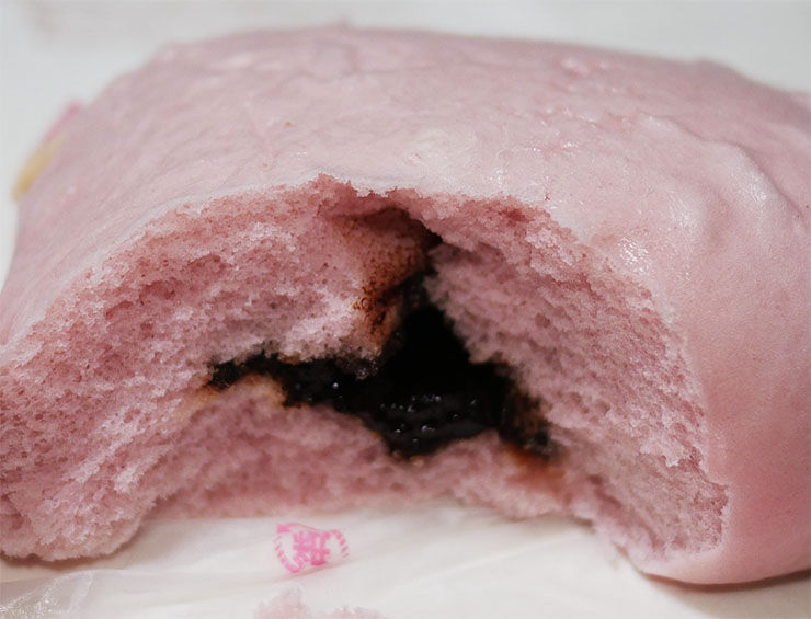 プリプリなピンクの生地が生チョコソースの甘さを吸収し、上品な甘さに変身させる。