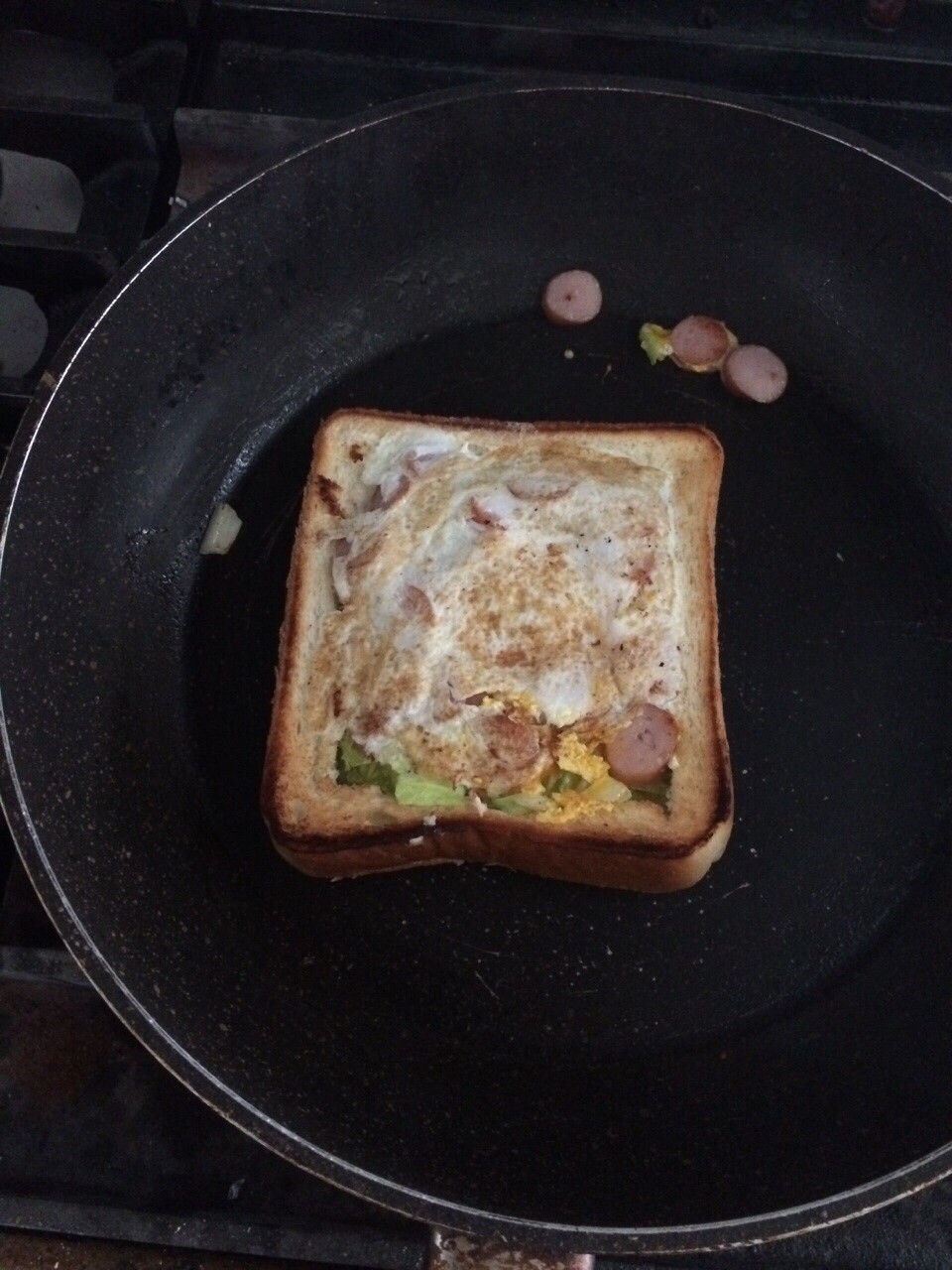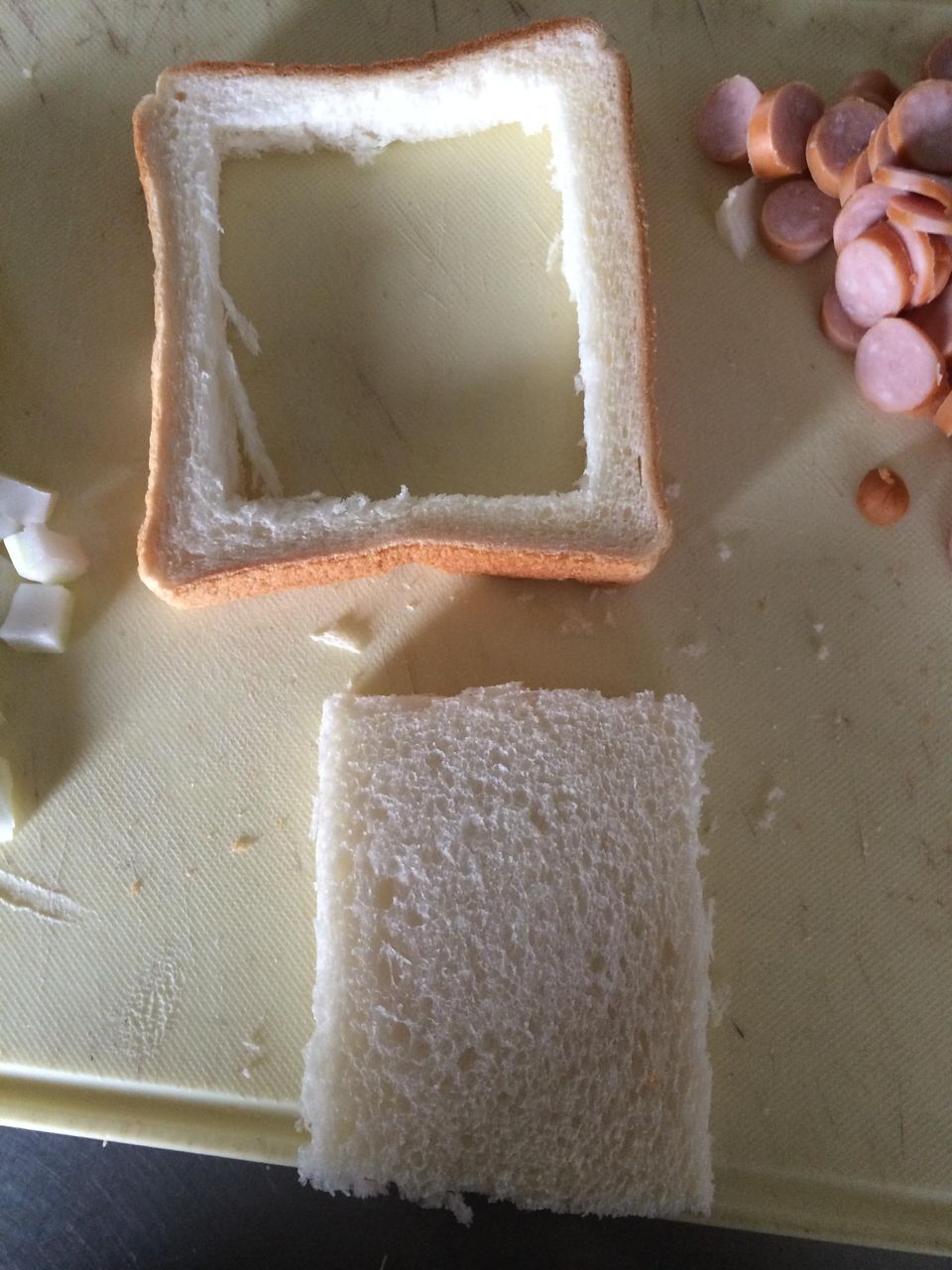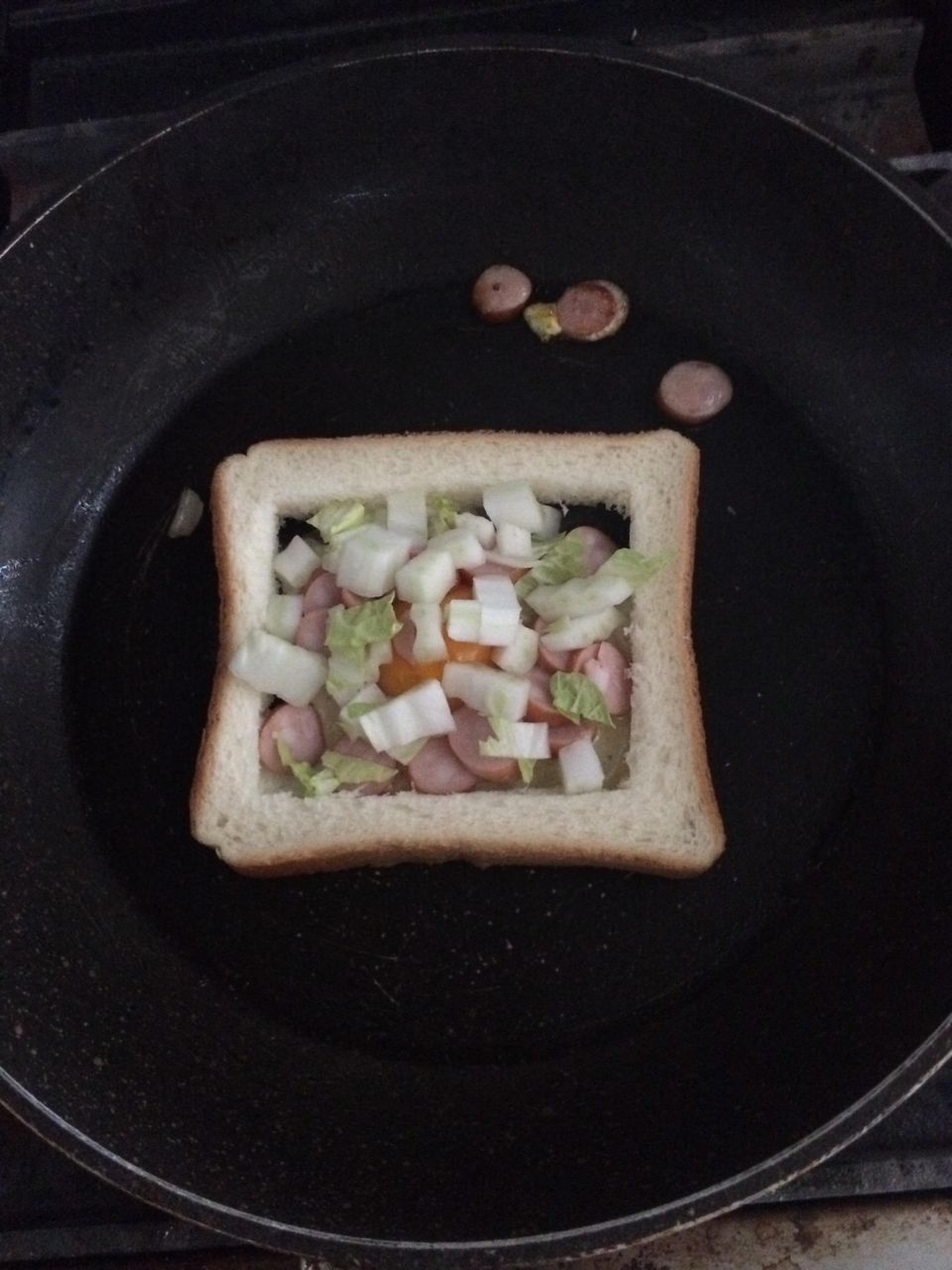 材料は、食パン、ソーセージ、白菜、卵