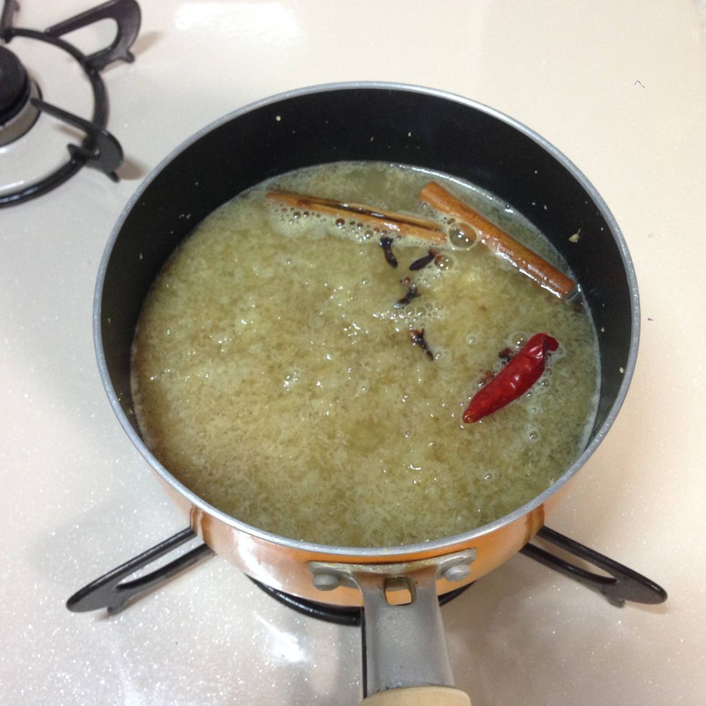 クローブってのはスパイスの一種です。今回は辛口でスパイシーなのを作るのでいれました。