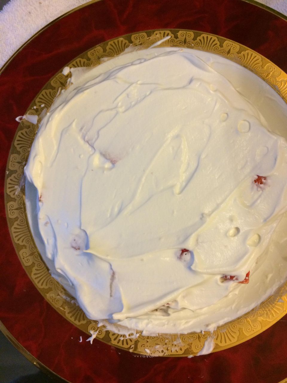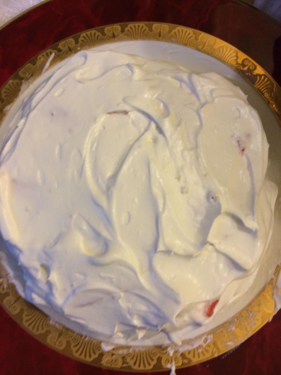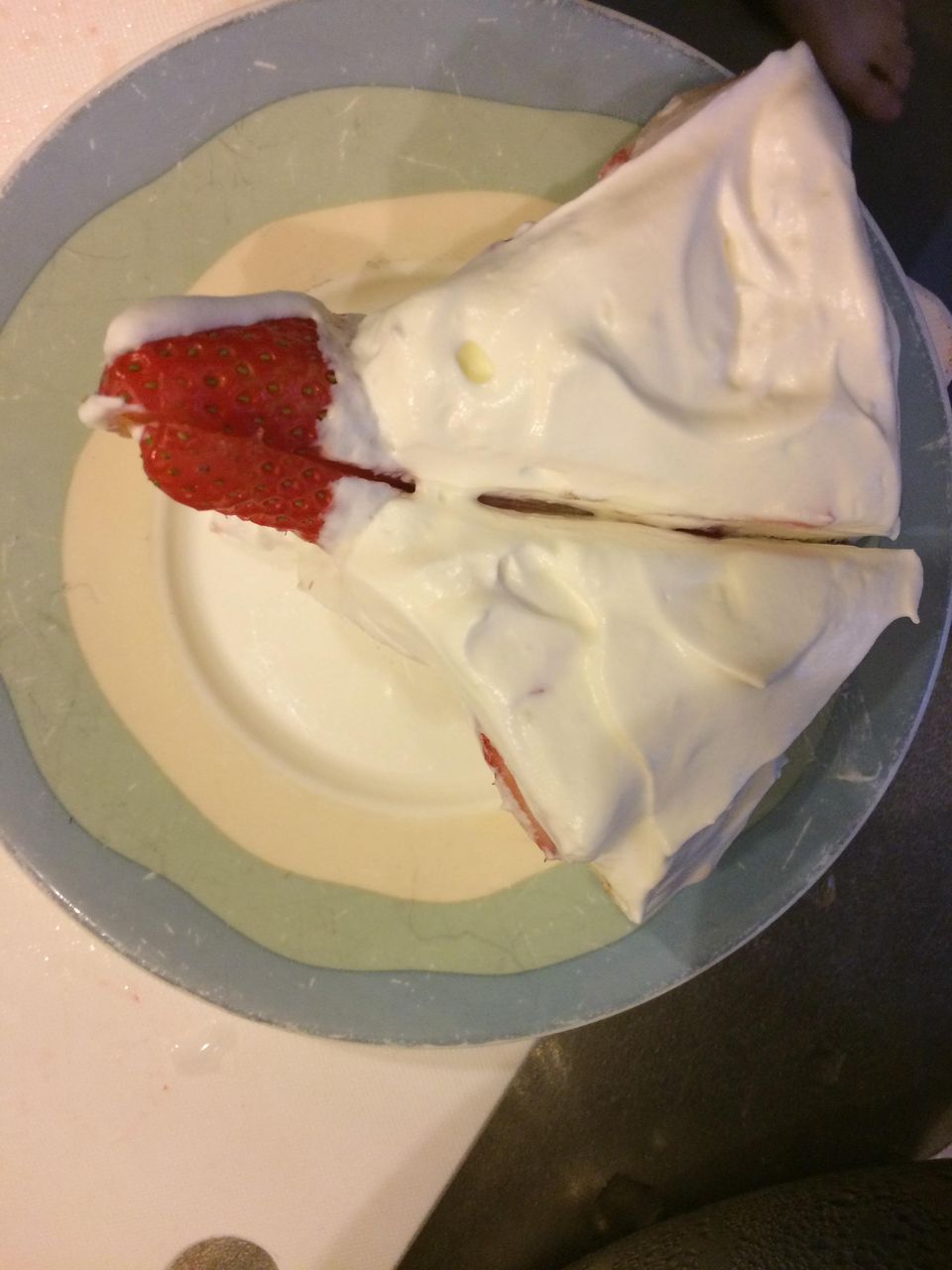 飽きたら半分とかに切ってクリームとイチゴ挟んで上乗っけて周りにまたクリーム塗りたくって苺デーンと乗っけると完成。