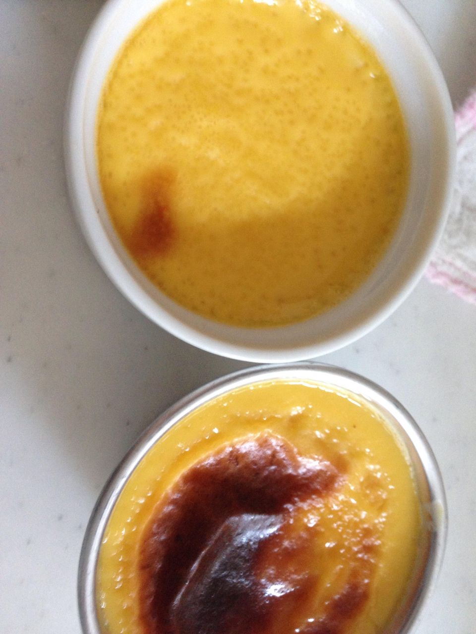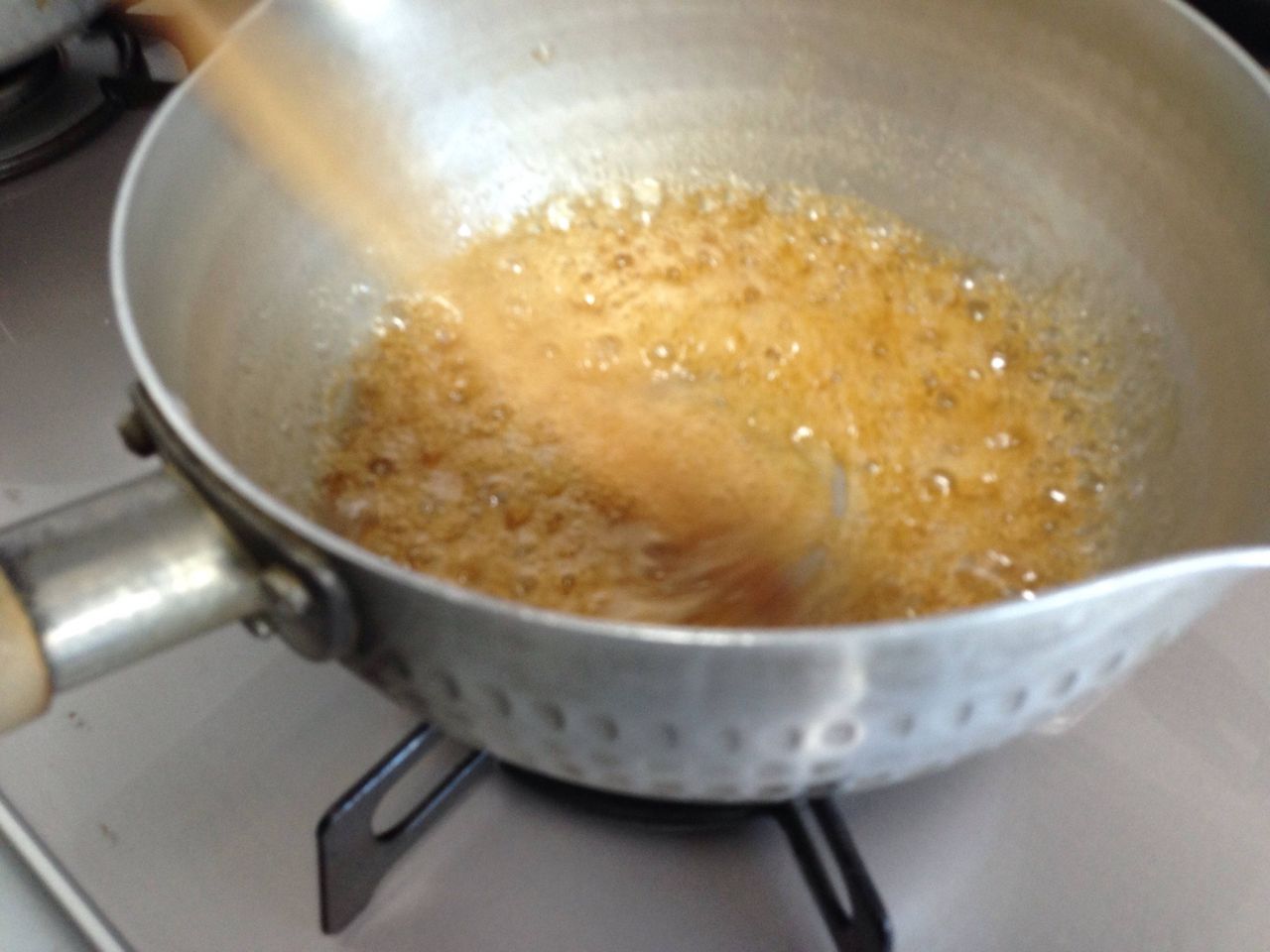 カラメルを作るとき、お湯を入れたらバチバチなるけどビビらないで混ぜると美味しくなるよ
