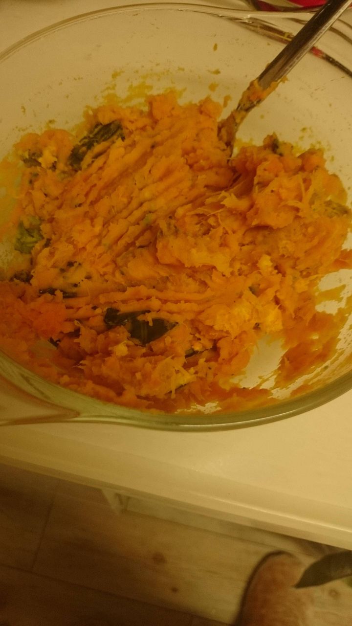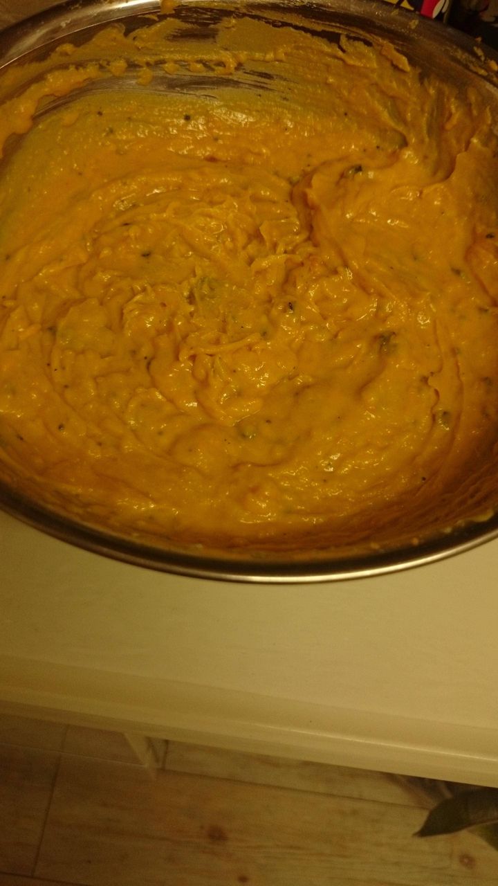 材料はカボチャとホットケーキミックスと卵とバターだよ