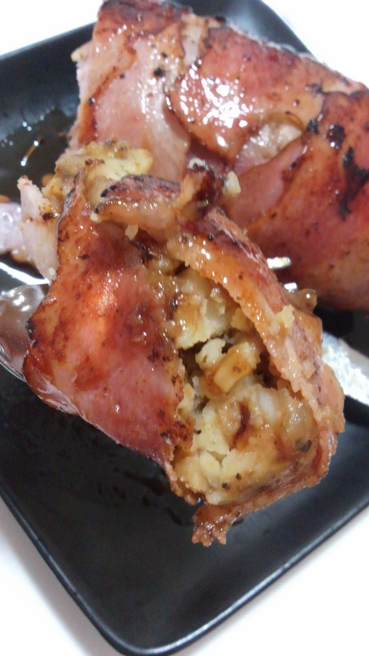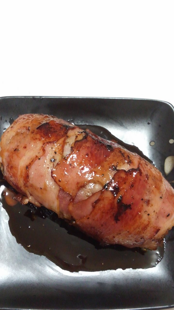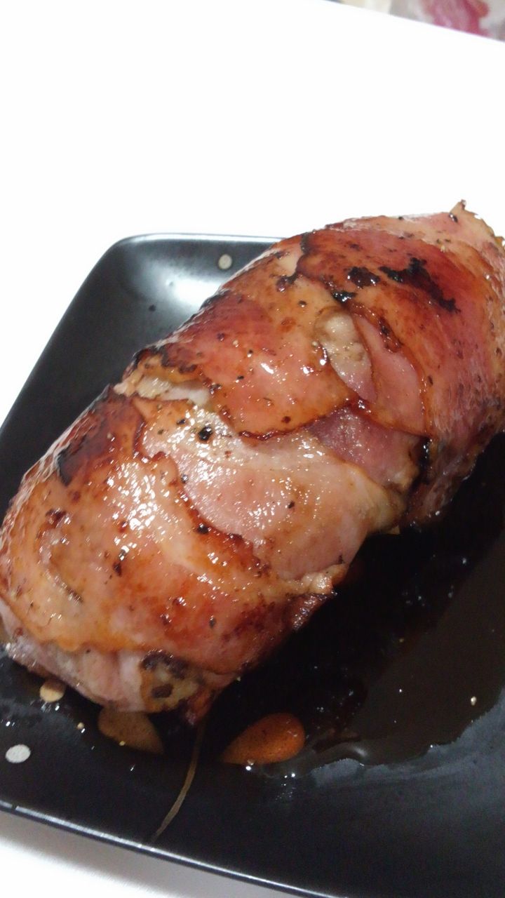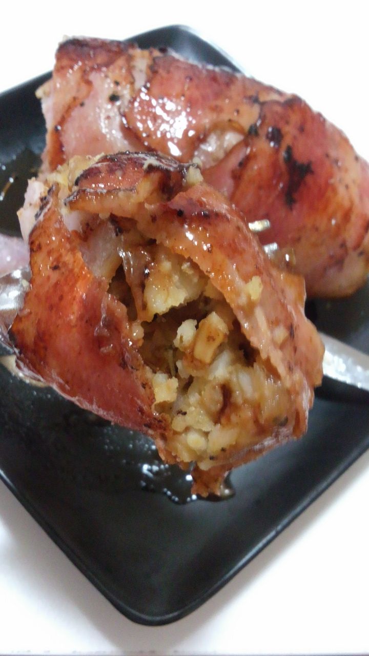 ・ベーコンを巻いて、巻き終わりを下にして油を敷いてないフライパンで焼く