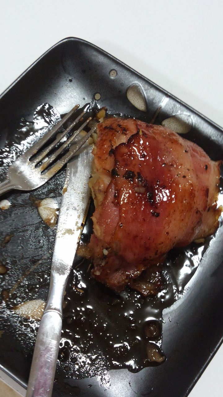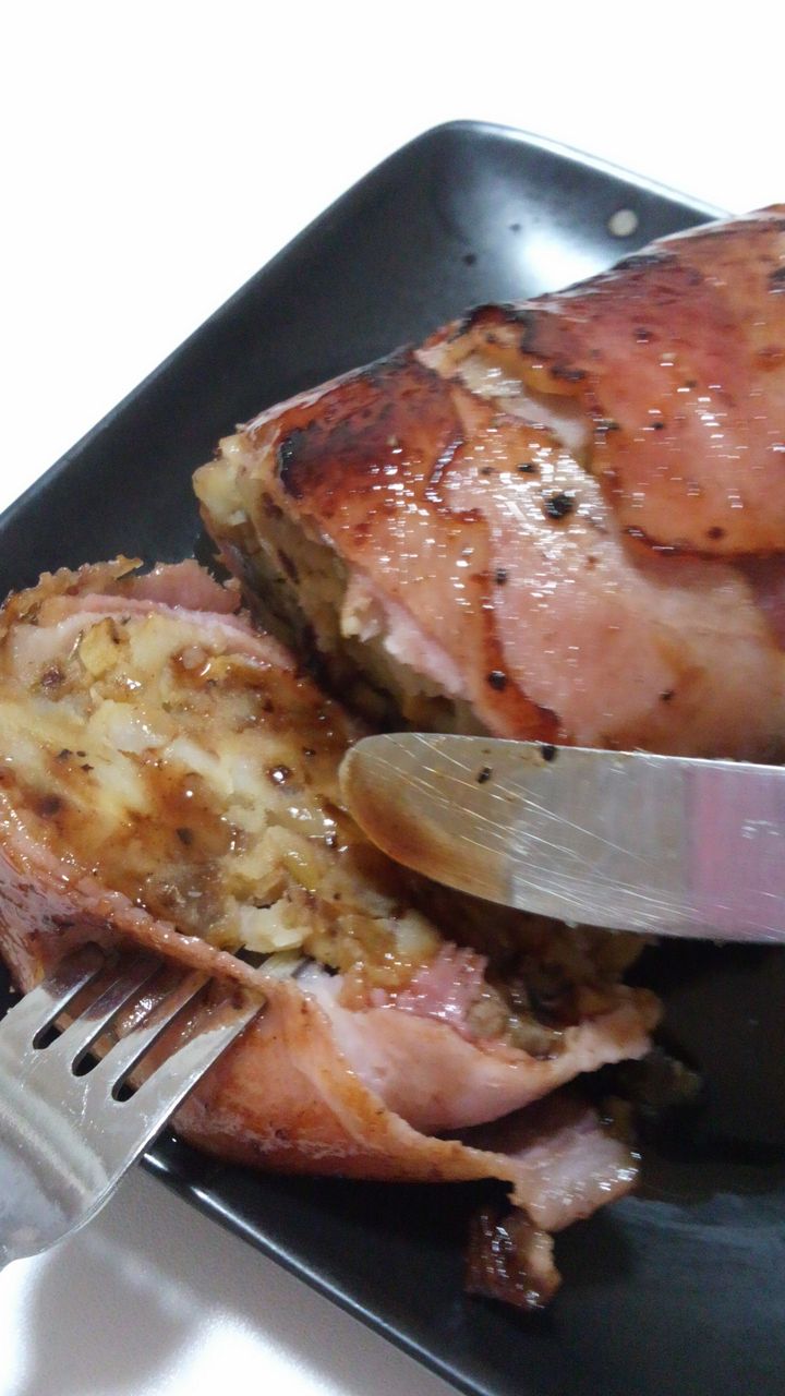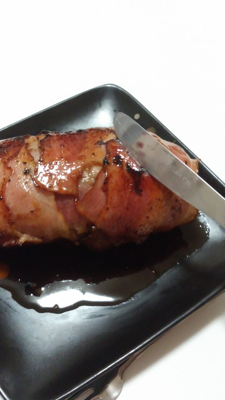 ・全体に焼き目が付いたら取り出して、ベーコンの脂が残ってるフライパンにソースの材料を入れて火にかける