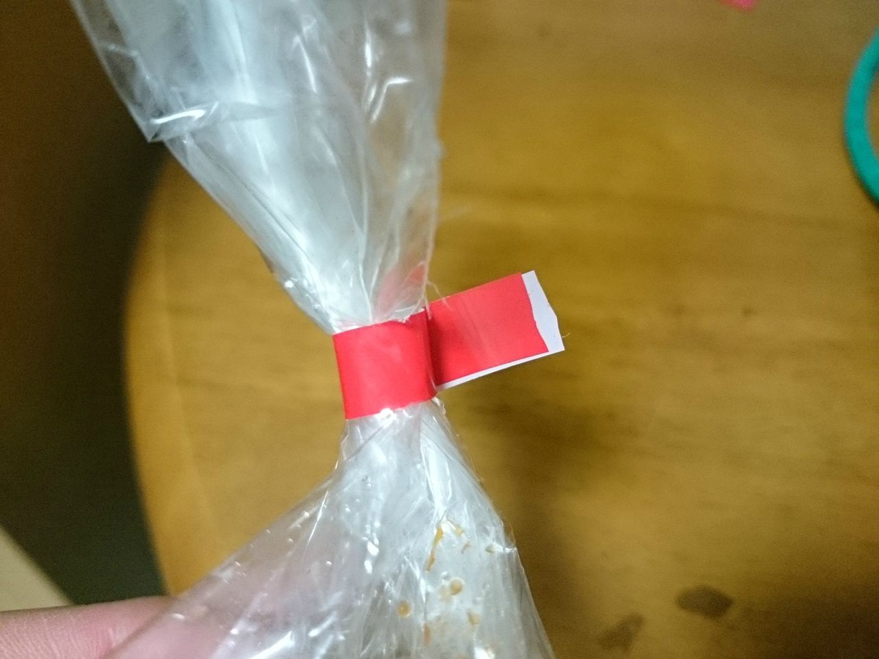 そうするとテープが合わさってる部分と袋にくっついてる境目のところが少し剥がれるからそこからテープを剥がすんやで