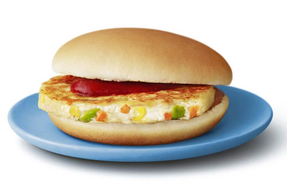3種類の野菜を練りこみグリルしたチキンパティを使った「モグモグマック」を、