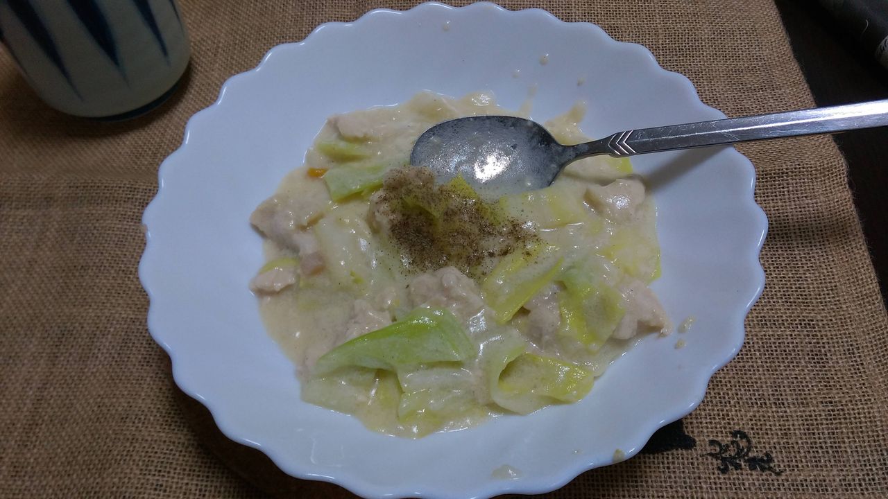昨日の晩飯は、鳥むね肉とキャベツのクリーム煮風や