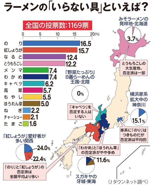 ↓ここから「いらないラーメンの具の地域差」について↓