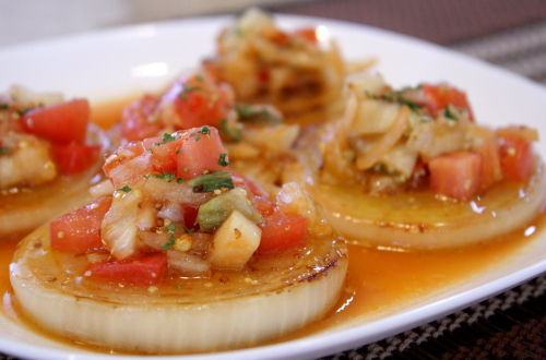 知人の家で出して貰ったおつまみで、新玉スライスに熱したごま油を