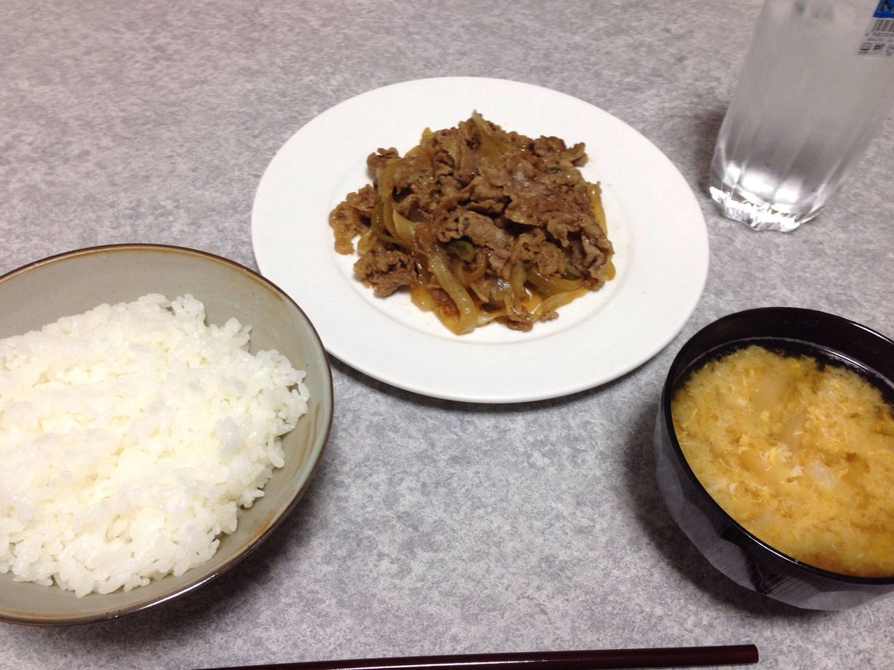 ちなみに俺は牛肉と玉ねぎの焼肉のタレ炒めとかきたま汁を作った