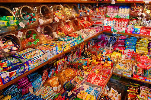 キャンディは容器1個、ハッピーターンとしみチョココーンは大袋の奴を各1個づつ