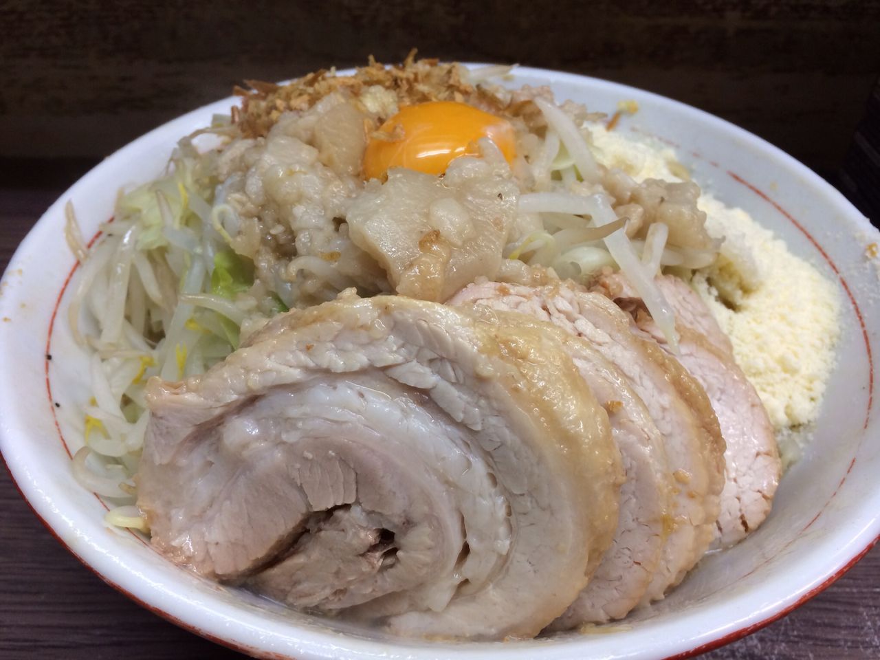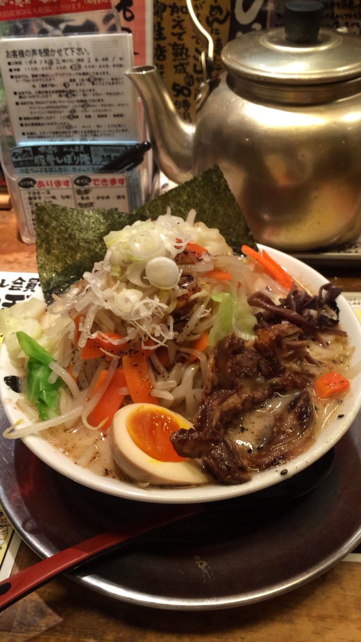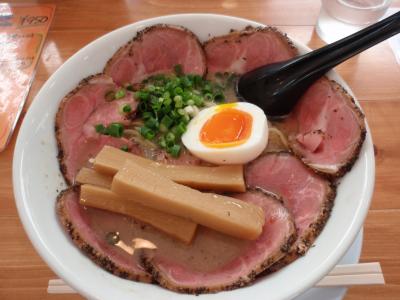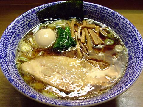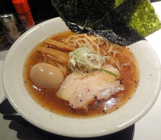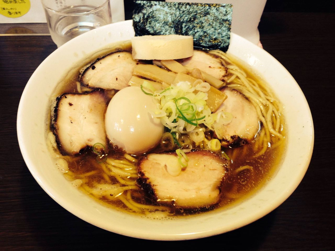 チャーシュー、海苔、半玉、メンマ、ネギ、鶏ガラの醤油