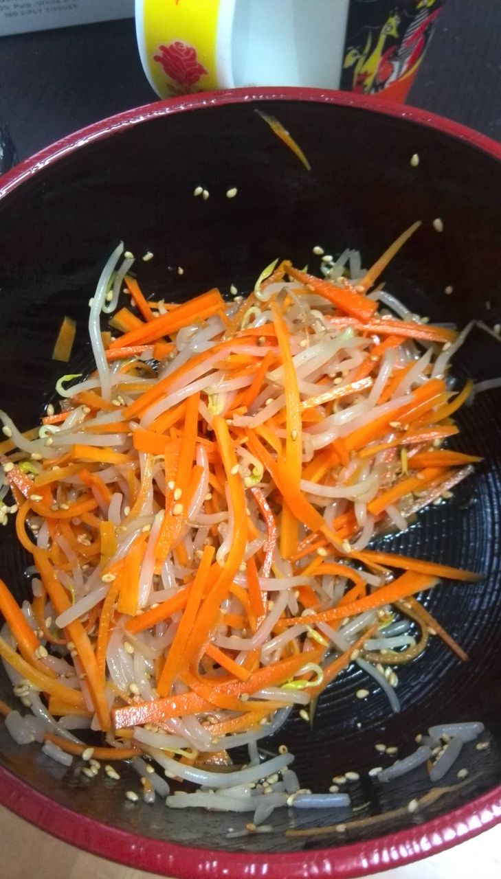 にんじんともやしを蒸して